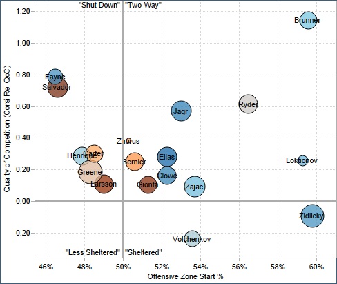 From Rob Vollman’s player usage charts: http://www.hockeyabstract.com/playerusagecharts.