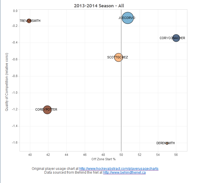 From Rob Vollman’s player usage charts: http://www.hockeyabstract.com/playerusagecharts.